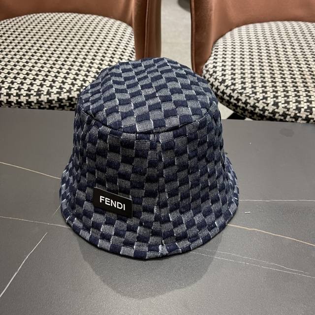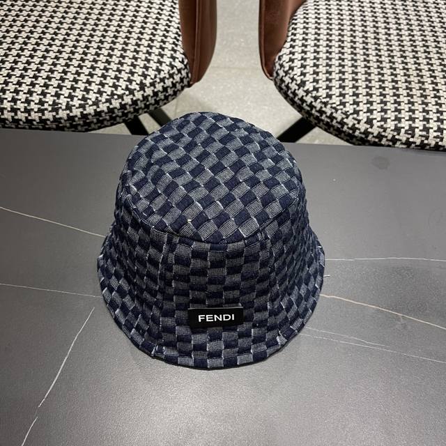 芬迪 韩版时尚百搭纯色水桶帽女款格子简约显脸小渔