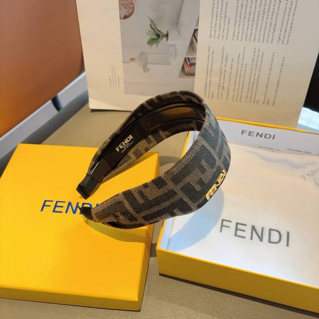 配包装 Fendi 芬迪 新款老花双F发箍,宽版原单头箍, 简约百搭,潮女必备品,超级的高大上!
