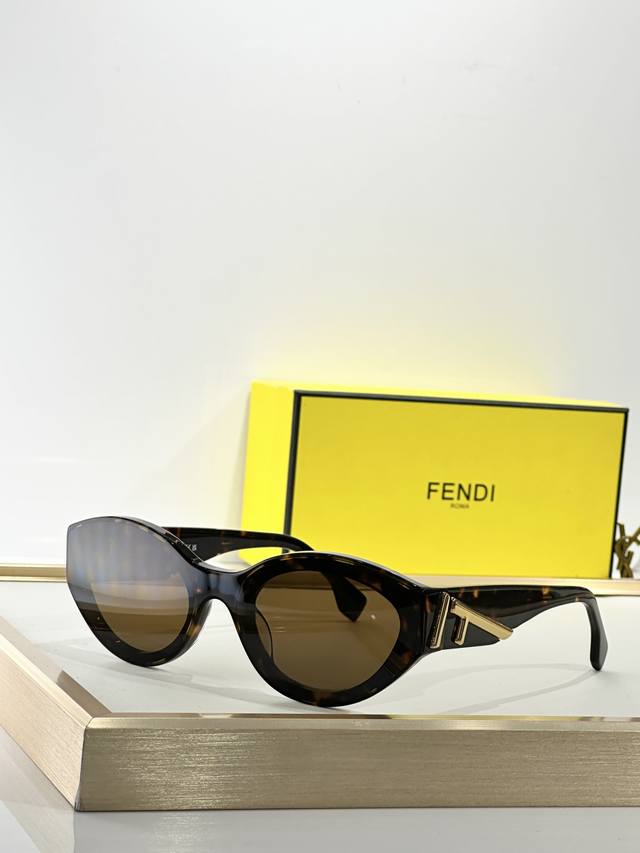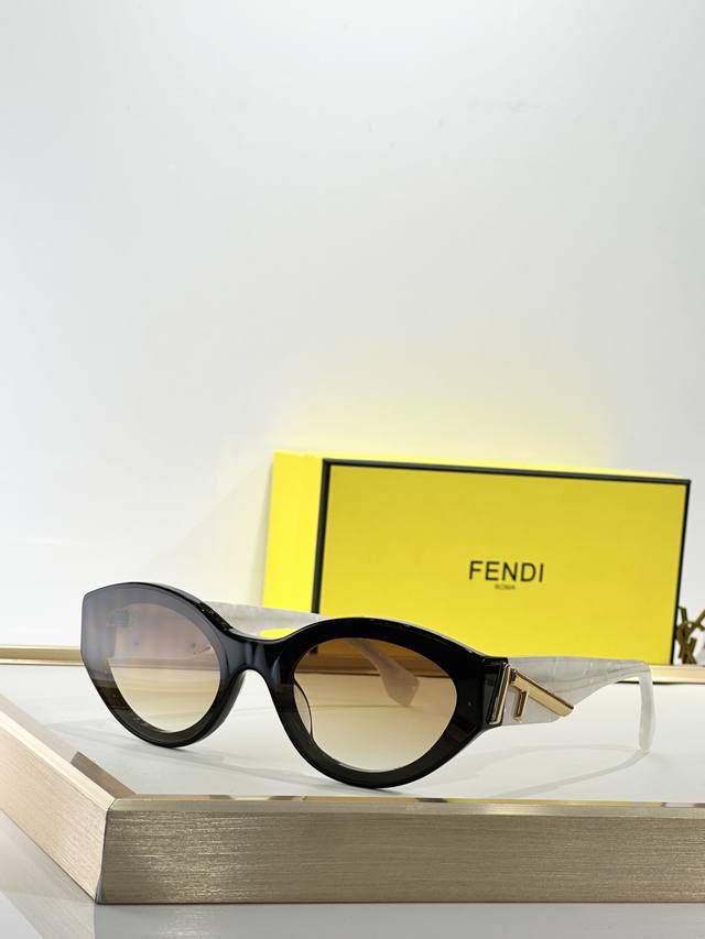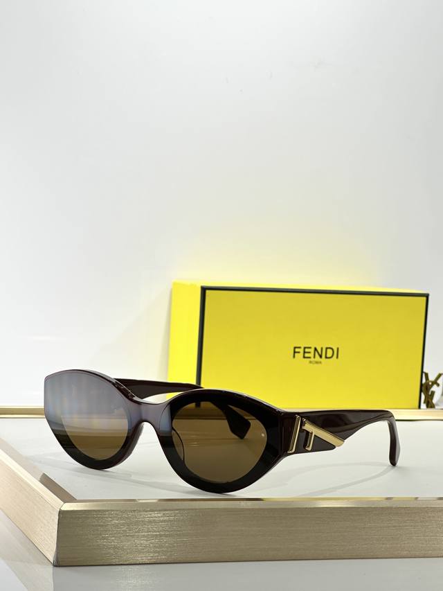 Fendi芬迪 2025新款字母F镶钻无框猫眼太阳镜复古欧美墨镜时尚金属太阳眼镜女士墨镜