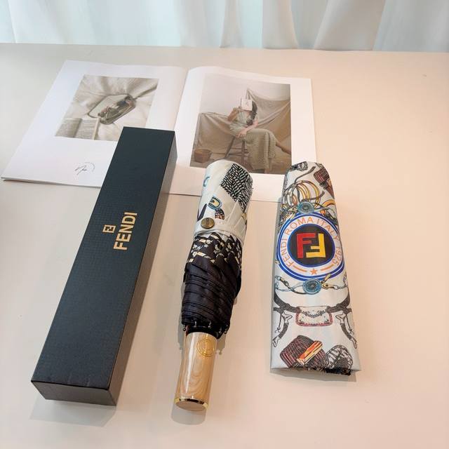 Fendi 芬迪 三折自动折叠晴雨伞 年度最新火爆单品 原单代工级品质 第一代210T碰击布防嗮拒水技术 阻隔99%直射伞面的紫外线 杜绝夏季晒伤 清爽出行 选用铝合金+玻纤 抗风雨性能佳 简单方便 展现档次与品位