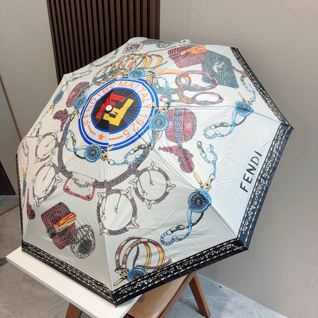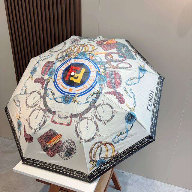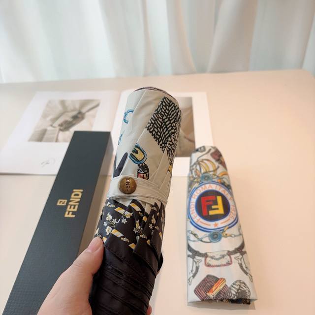 / Fendi 芬迪 三折自动折叠晴雨伞 年度最新火爆单品 原单代工级品质 第一代210T碰击布防嗮拒水技术 阻隔99%直射伞面的紫外线 杜绝夏季晒伤 清爽出行 选