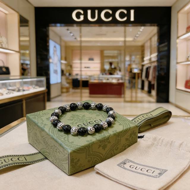 / 古驰手链男女同款 最新款天然玛瑙手链档次更高明星同款Anger Forest系列双G玛瑙水晶手链 尺寸:16-24厘米 细节对版做旧处理 非市面亮面版型 非市面