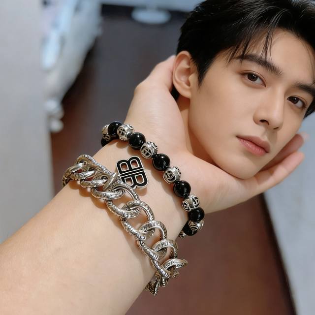 古驰手链男女同款 最新款天然玛瑙手链档次更高明星同款Anger Forest系列双G玛瑙水晶手链