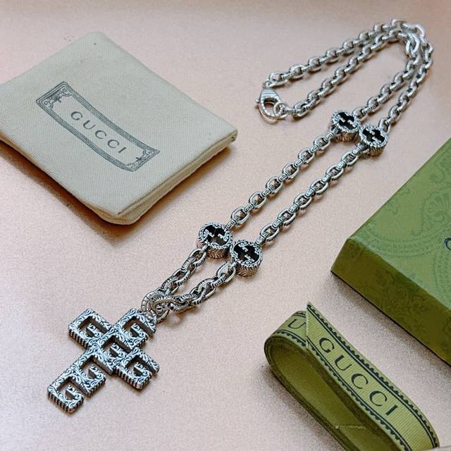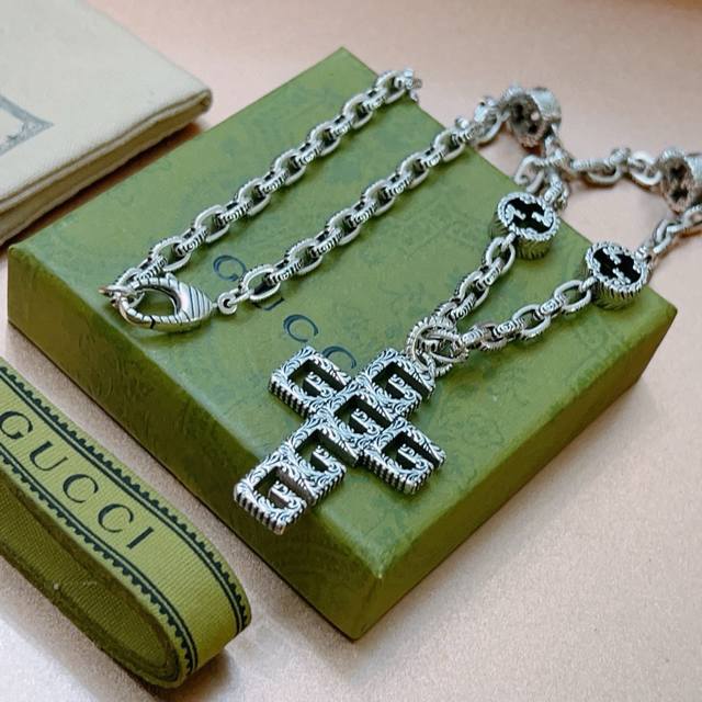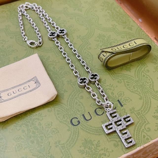 / 古驰项链最新款项链链条档次更高明星同款Anger Forest系列双G经典款吊牌项链系列复古银项链 链长60厘米可改长度 细节对版做旧处理 非市面亮面版型 这款