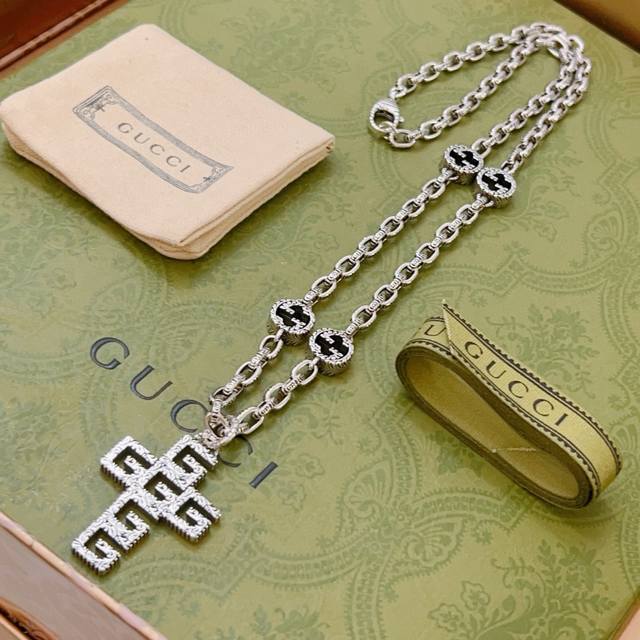 古驰项链最新款项链链条档次更高明星同款Anger Forest系列双G经典款吊牌项链系列复古银项链 链长60厘米可改长度 细节对版做旧处理 非市面亮面版型 这款一直在出 古驰里面热卖款 非常好搭配潮流衣服