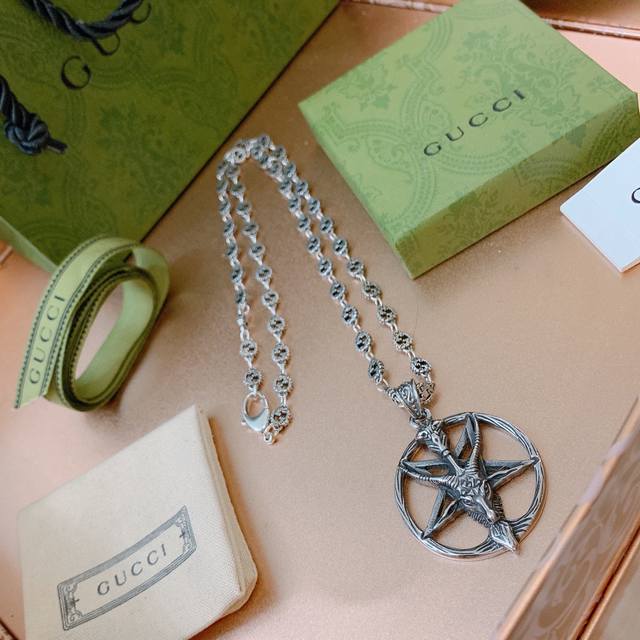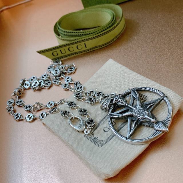 FFF 古驰项链2026最新款链条档次更高明星同款Anger Forest系列双G五角星羊头复古银项链 DDD 细节对版做旧处理 非市面亮面版型 DDD 这款一直在出 古驰里面热卖款 非常好搭配潮流衣服 DDD