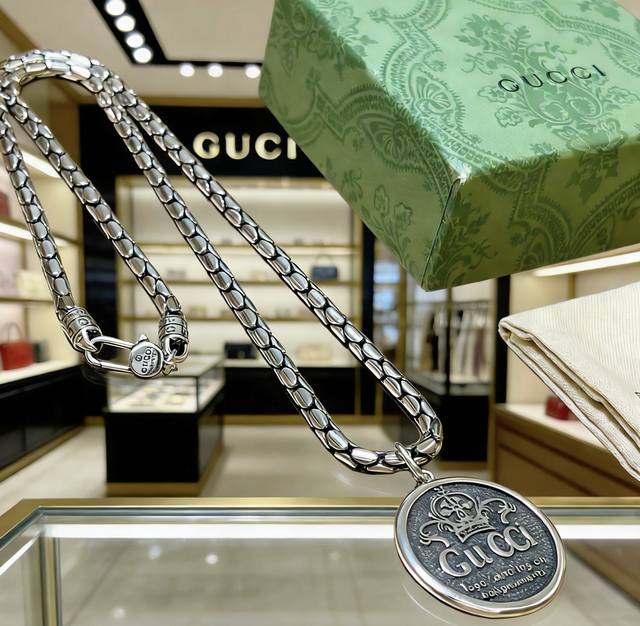 顶级原版 Gucci 古驰 复古做旧经典双G吊坠项链 男女同款- 顶级复刻版本 独家实拍- 对版对标品质 带原版钢印编码刻字