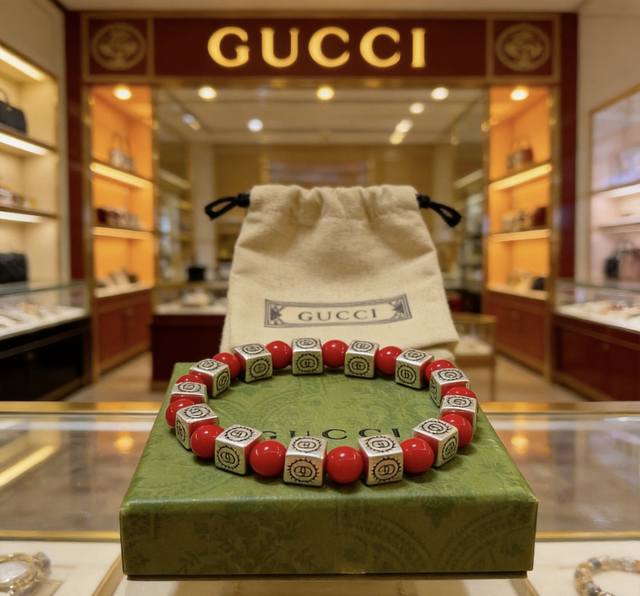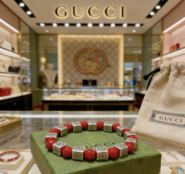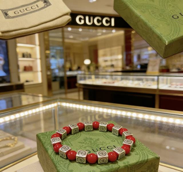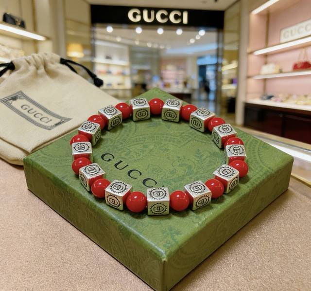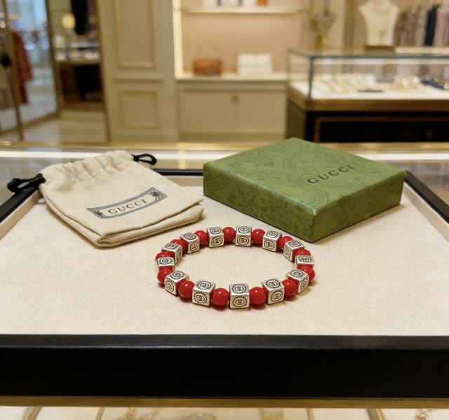 新品发布 古驰手链奢华古驰手串 红珊瑚手链水晶男女同款 最新款全件串珠手链档次更高明星同款Anger Forest系列双G复古古驰手链