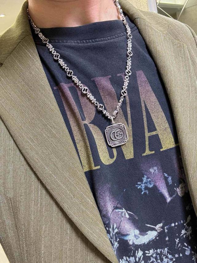 新品发布 古驰项链最新款链条档次更高明星同款Anger Forest系列双G经典款设计理念项链系列复古银项链细节对版做旧处理 非市面亮面版型 这款一直在出 古驰里面热卖款 非常好搭配潮流衣服
