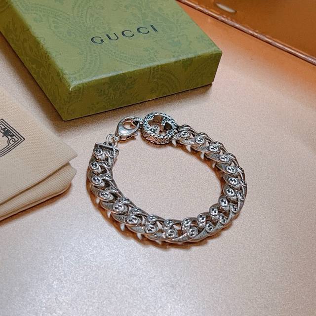 古驰手镯手环独特魅力十足最新款手镯档次更高明星同款Anger Forest系列双G经典款系列复古银古驰手环 细节对版做旧处理...