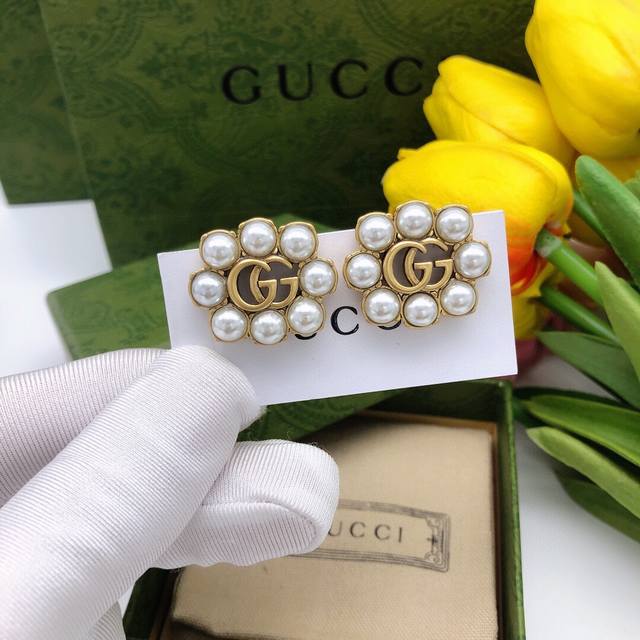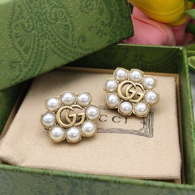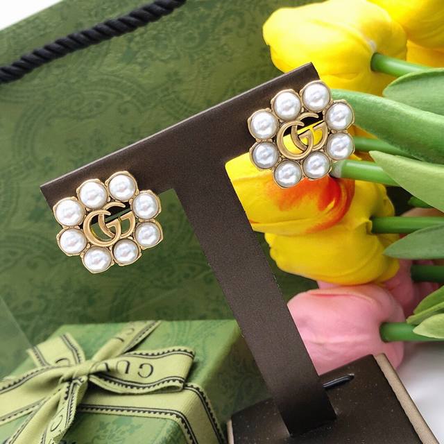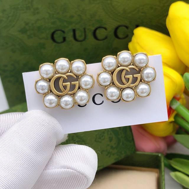 / 编号Ged0125 古驰双G米珠耳钉复古女孩必备