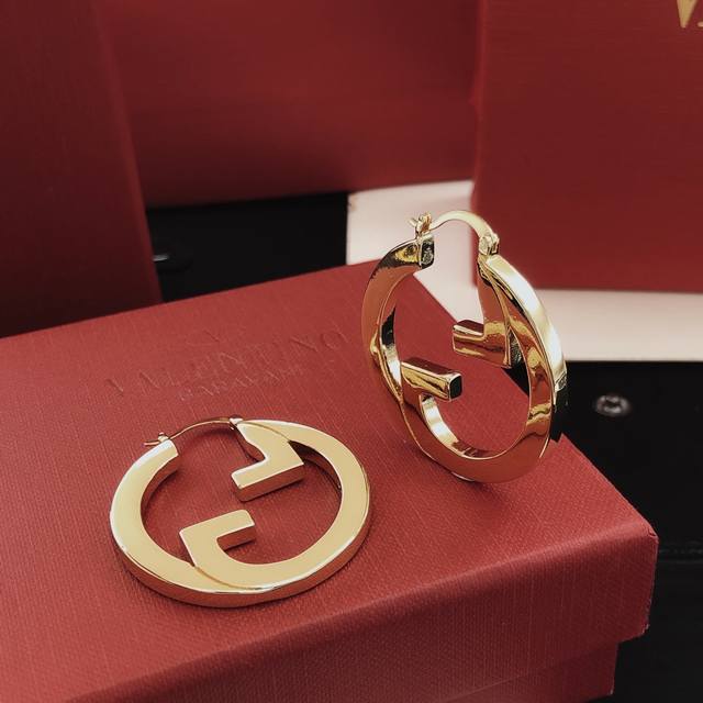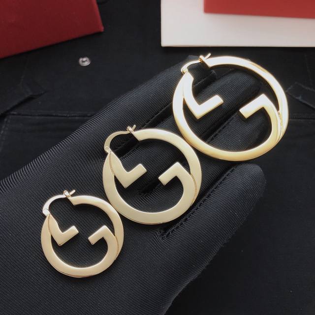 / 编号Ged0155中号4Cm Gucc*最新款圆形光面耳勾 一致Z批黄铜材质