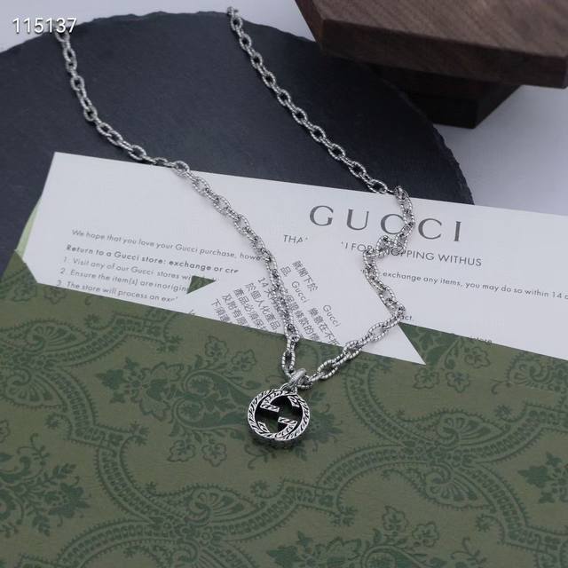 / 顶级原版 Gucci 古驰 复古做旧经典双G吊坠项链 男女同款 - 顶级复刻版本 - 独家实拍 - 对版对标品质 带原版钢印编码刻字