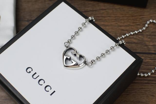 Gucci古奇双G爱心互扣式项链超经典的双G标志 细节到位 不浮夸最具代表性的爱心G标志悬挂在珠串链条上显得醒目别致大气时尚 必入款批