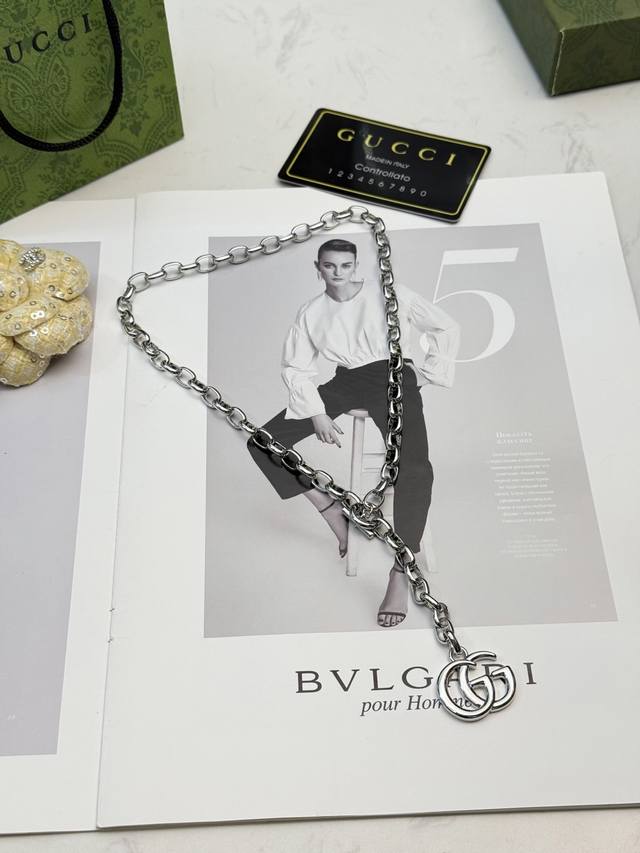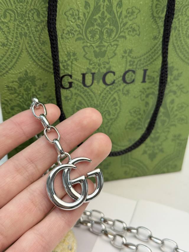 Guccigg银色项链 Guccigg银色项链,经典双G标志吊坠,辨识度超高