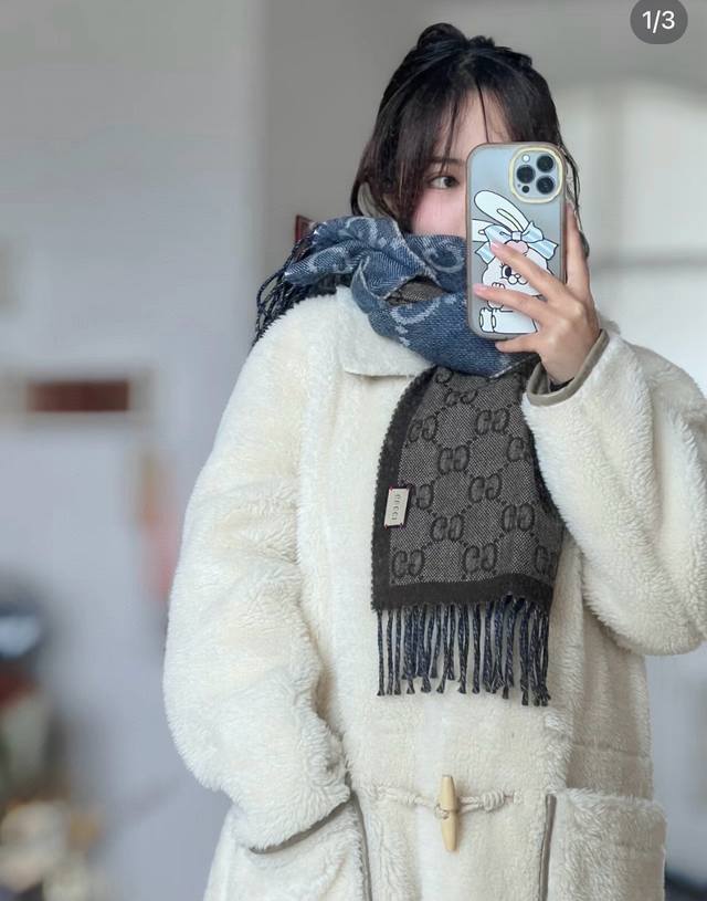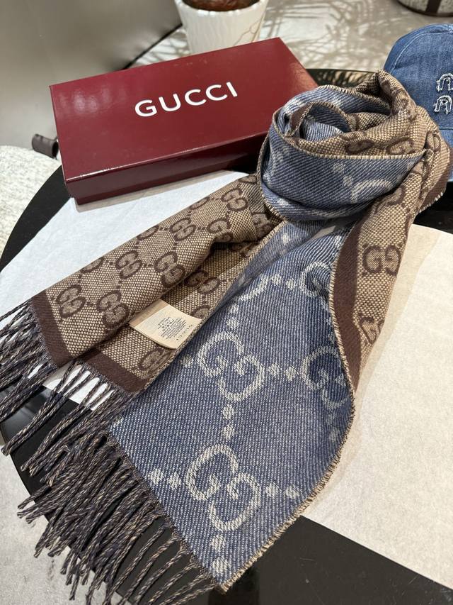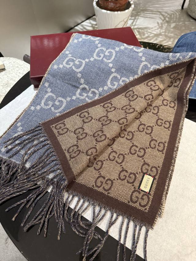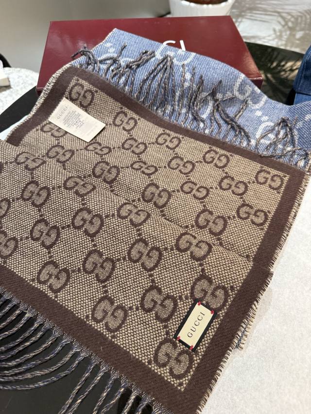 牛稳稳的“高段位”!时髦过冬!!Gucci秋冬新款提花双面围巾!高端奢华,非常重工的双面老花设计,正反两面都采用Gg图案,灵动而又不失俏皮。高级时髦精必入推荐,品质牛的不需要多说了,上身的感觉真的无敌高级气质!!来自女人们都会爱的Gucci老花~又是美出了天际啊!!自带高级气场,Gucci独有的高级时髦,稳稳的“高段位”!羊毛手感超级厚实柔软舒服!!!真的非常令人佩服,非常有大牌的气场,张力十足,温柔时尚知性!尺寸规格:34*195Cm DDD