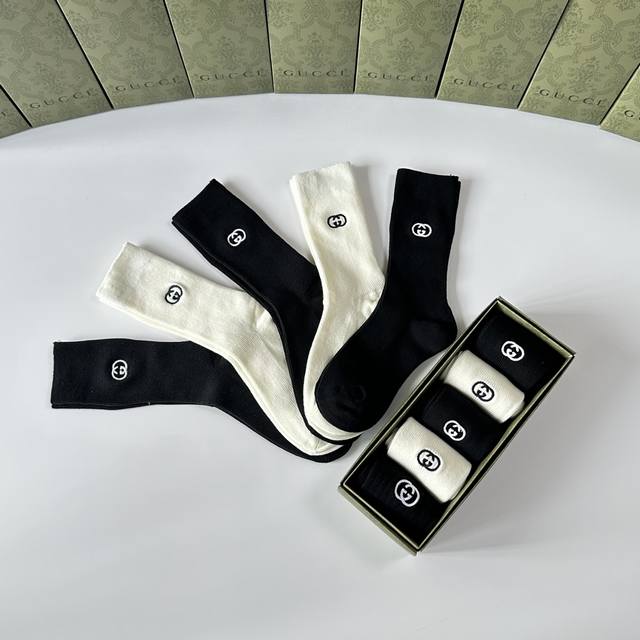 / 特 配专柜包装 Gucci 古驰 新款羊绒中长款堆堆袜袜子!一盒五双,专柜同步筒袜袜子,大牌出街,潮人必备超好搭。