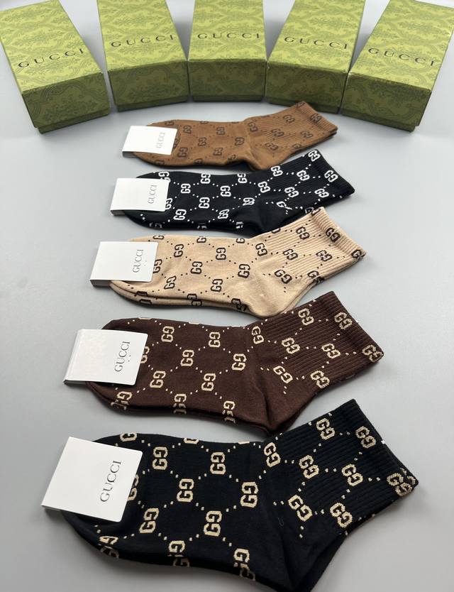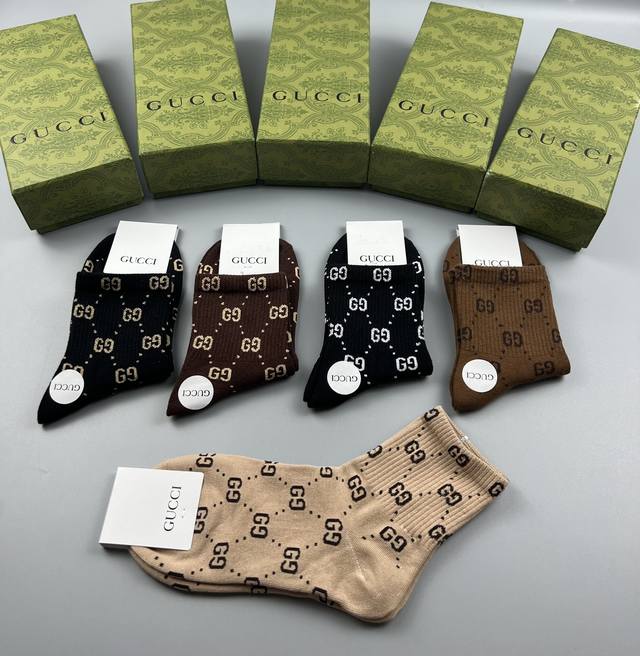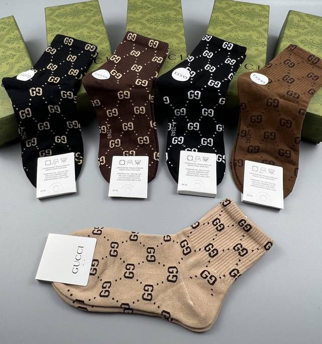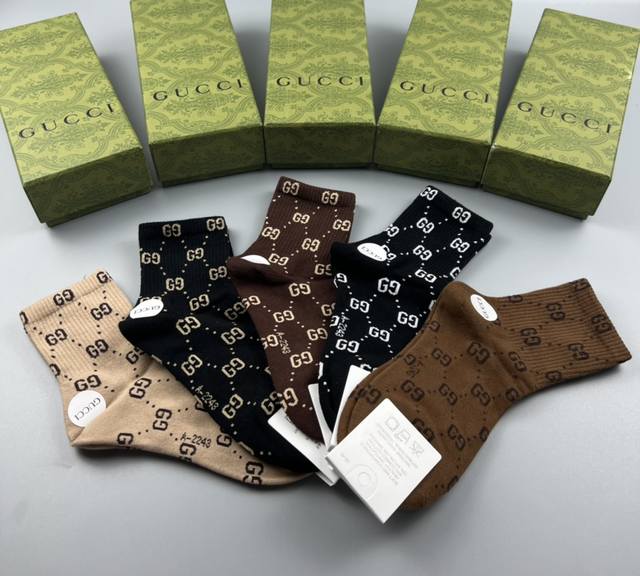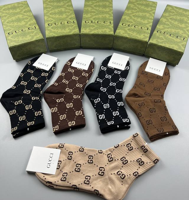 / 特 配专柜包装Gucci 古驰 新款中长款堆堆袜袜子!一盒五双,专柜同步筒袜袜子,大牌出街,潮人必备超好搭