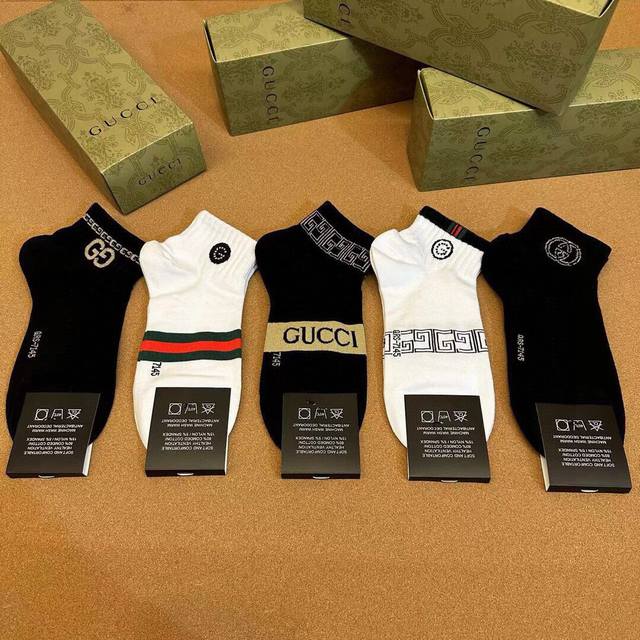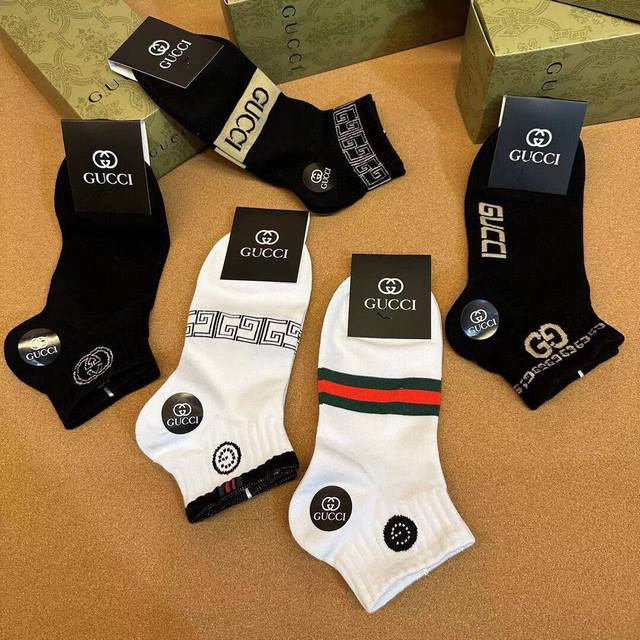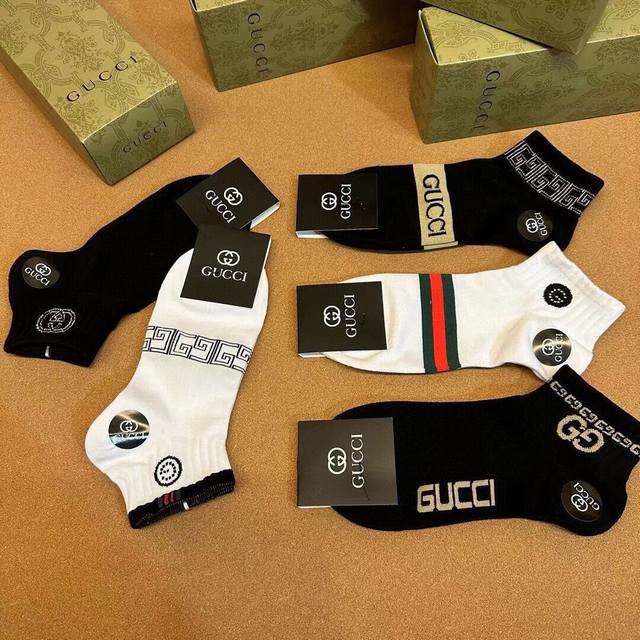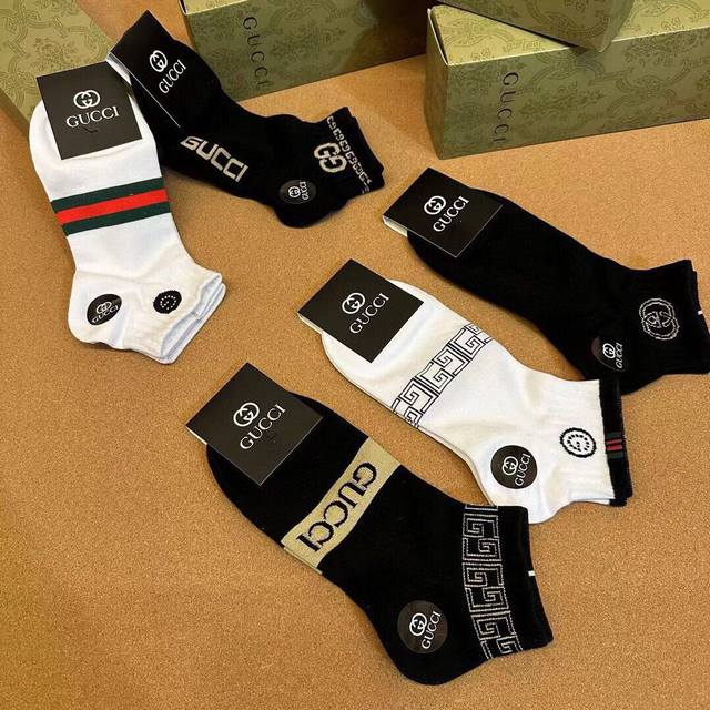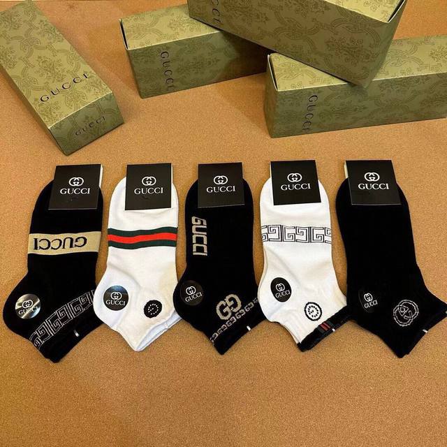 特 Gucci 古奇G家新品男款短袜 一盒五双 G家专柜同步短袜,提花经典标志,超级Nice,实物超漂亮,超火爆小单品,大牌出街,潮人必备超好搭