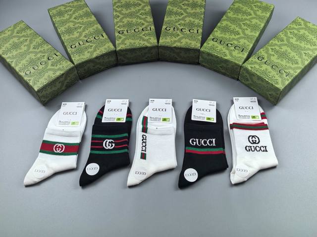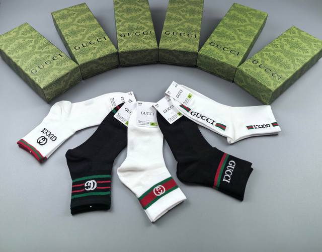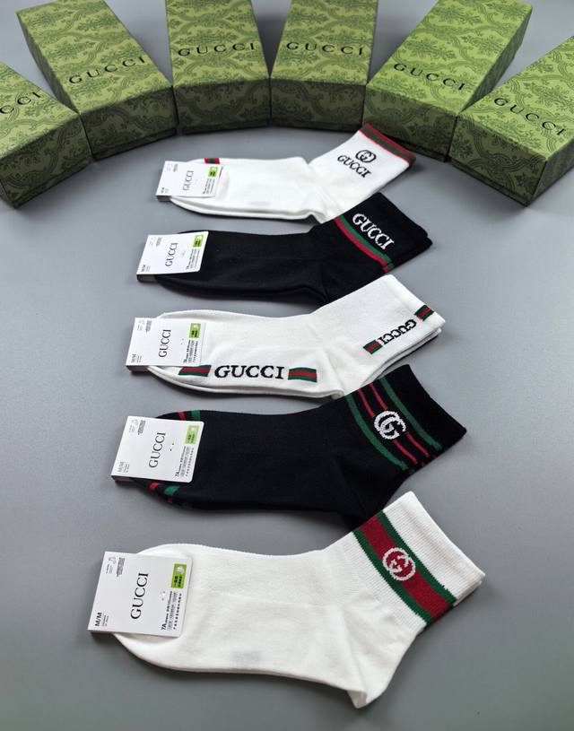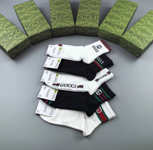 特 Gucci 古奇G家新品袜子 一盒五双 提花经典双G标志,超级Nice,实物超漂亮,超火爆小单品,大牌出街,潮人必备超好搭