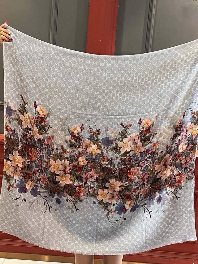秀外慧中,美到过分上身效果疯狂的喜欢Gucci New~300支高端戒指绒!真心美爆了的设计,这个花卉元素真的好高级,稳重优雅女人味四个色也是非常适合日搭的配色实物很美好.Baby Cashmere高端羊绒,面料柔软,印染精细,质感轻松穿过丝巾扣,高端品质轻薄的感觉非常舒适.夏天旅游空调房必须来条.冬天更美.手慢无110*200顶级进口300纯羊绒戒指绒长巾,四个色。