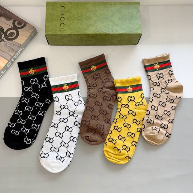 / 配包装 一盒5双 Gucci 古奇 新款袜子!纯棉面料,火爆图案,专柜同步中短筒袜子,大牌出街,潮人必备超好搭!