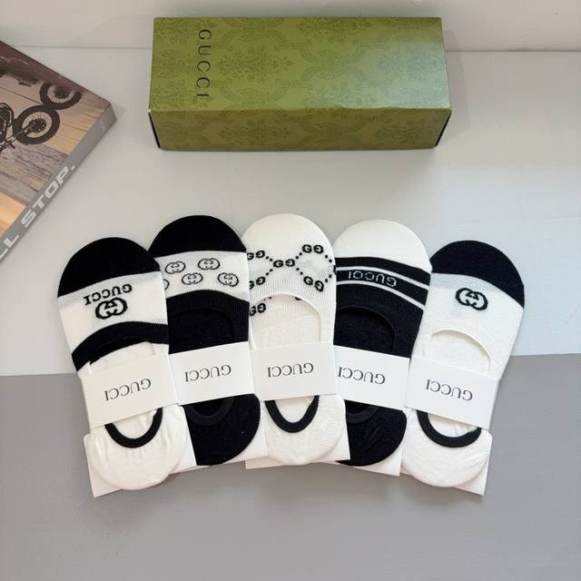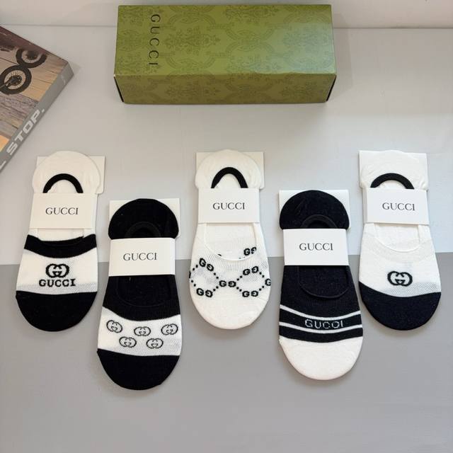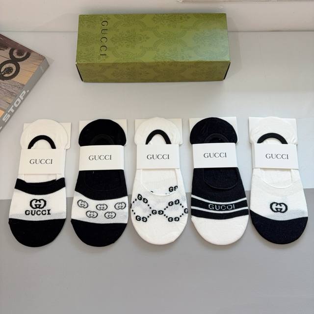 配包装 一盒5双 Gucci 古奇新款袜子 纯棉材制 经典Gg图案Logo,专柜同步袜子大牌出街,潮人必备,超好搭