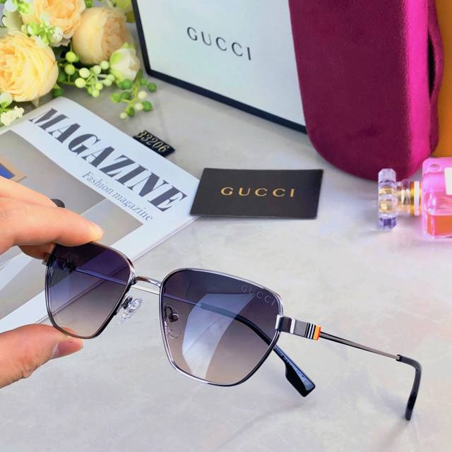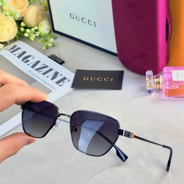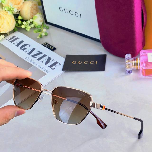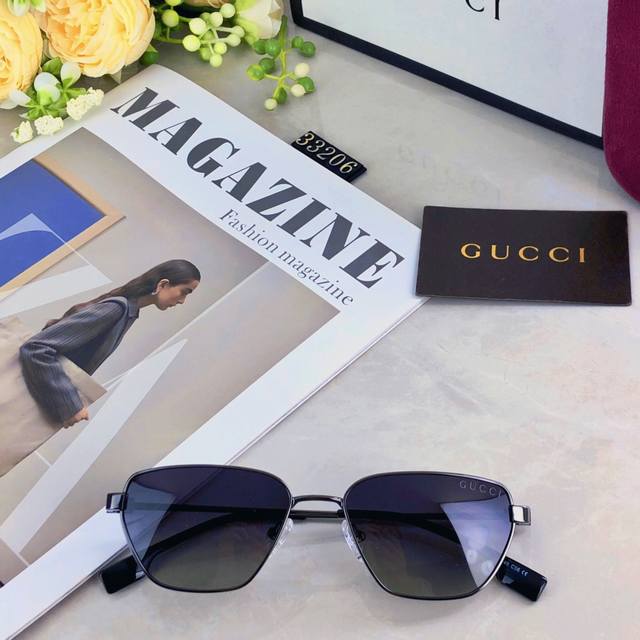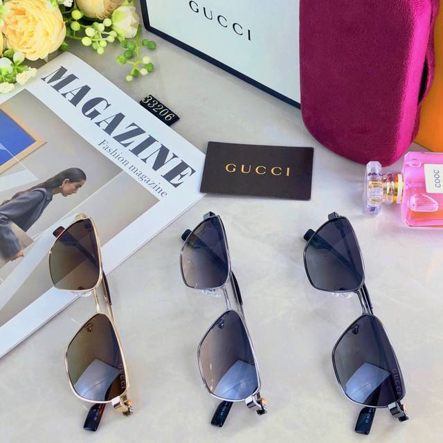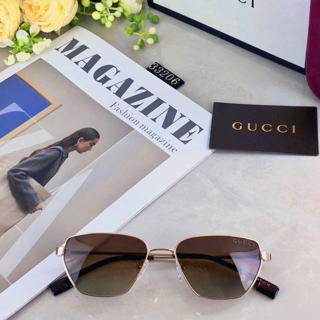 Gucci 2025开春新款 最新款方框太阳镜 各路网红纷纷带起气场满分 俏皮甜美.上脸效果更佳.金属质感超好 型号:G6730