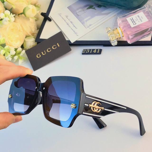 Gucc*新款网红太阳镜女复古不规则街拍遮阳墨镜防紫外线韩版显瘦太阳镜