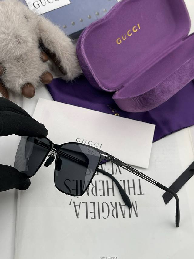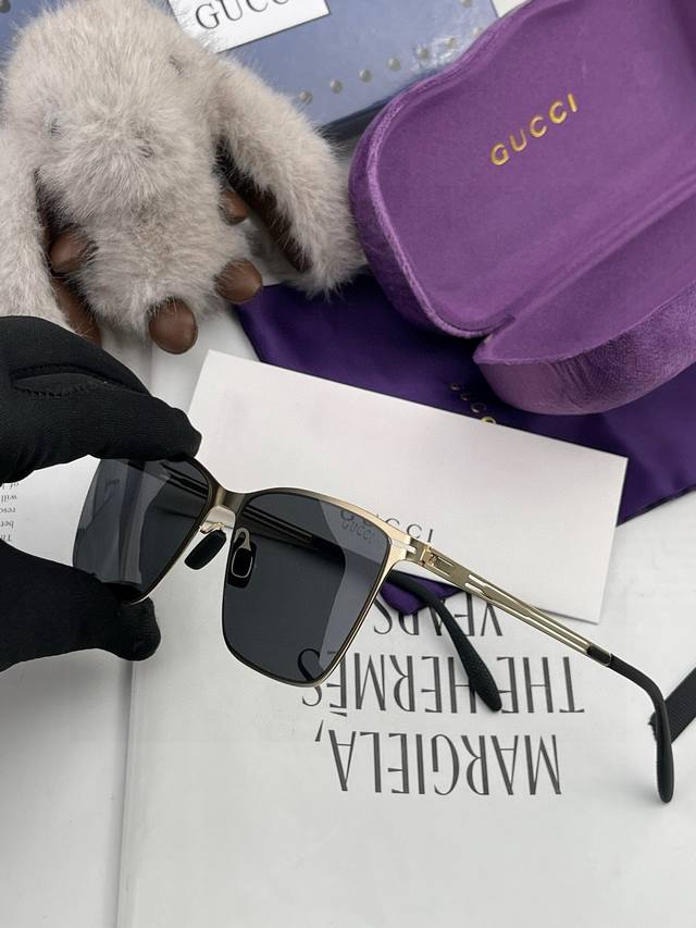 / Gucc* 2025新款男女情侣款太阳Ip电镀永不褪色 卖点:超轻超有弹性整幅眼镜无螺丝重要的是压不坏、镜片:高清尼龙偏光镜片 型号:G3881。