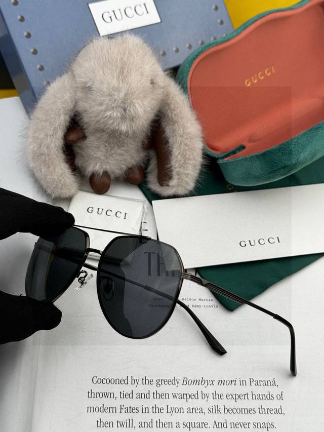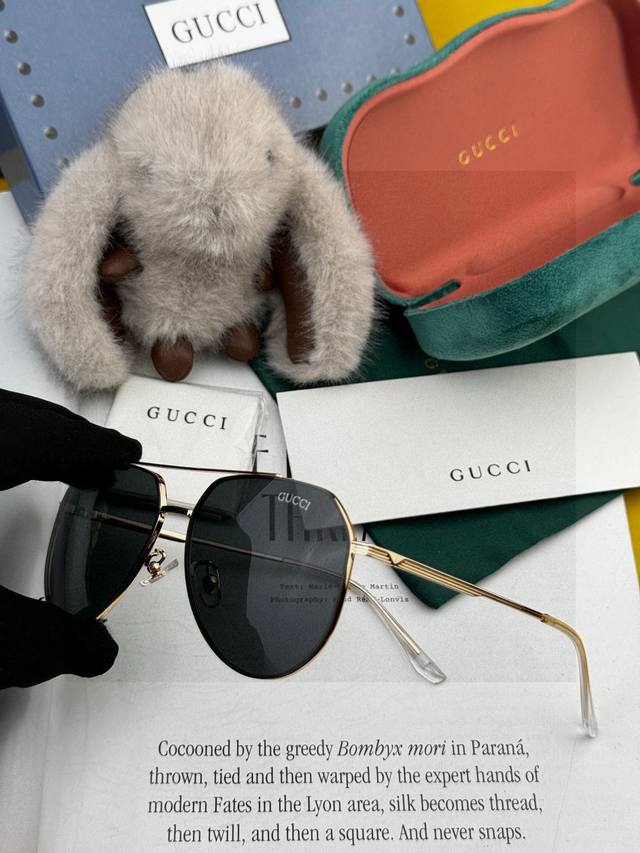 Gucc* 2025 新款男女情侣款太阳Ip电镀永不褪色 卖点:超轻超有弹性整幅眼镜无螺丝重要的是压不坏、镜片:高清尼龙偏光镜片 型号:G2731 DDD