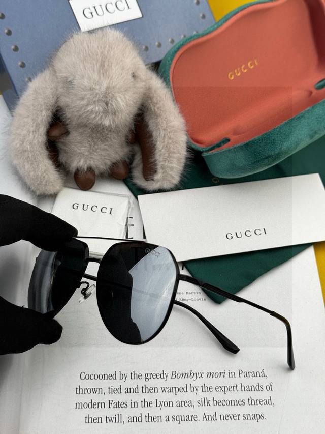 Gucc* 2025 新款男女情侣款太阳Ip电镀永不褪色 卖点:超轻超有弹性整幅眼镜无螺丝重要的是压不坏、镜片:高清尼龙偏光镜片 型号:G2731