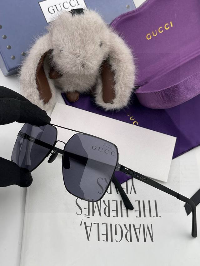 Gucc* 2025 新款男女情侣款太阳Ip电镀永不褪色 卖点:超轻超有弹性整幅眼镜无螺丝重要的是压不坏、镜片:高清尼龙偏光镜片 型号:G3733