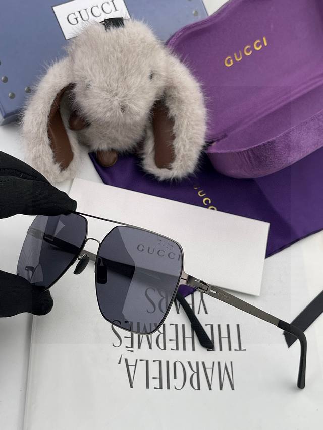 / Gucc* 2025 新款男女情侣款太阳Ip电镀永不褪色 卖点:超轻超有弹性整幅眼镜无螺丝重要的是压不坏、镜片:高清尼龙偏光镜片 型号:G3733