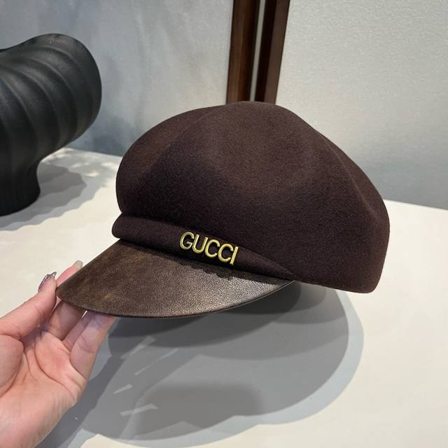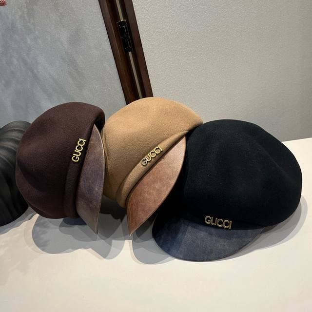 Gucci古奇秋冬新款羊毛鸭舌军帽,百分百羊毛面料,头围57Cm