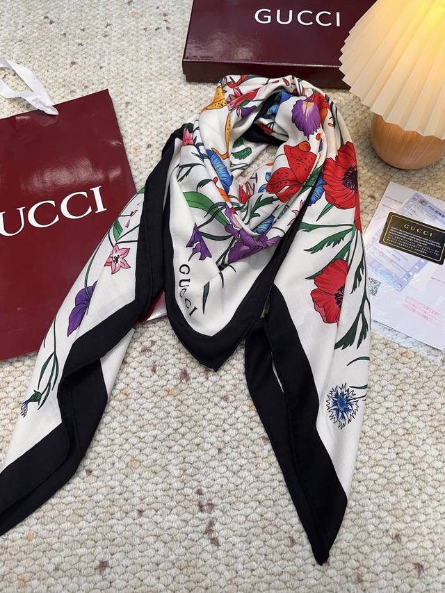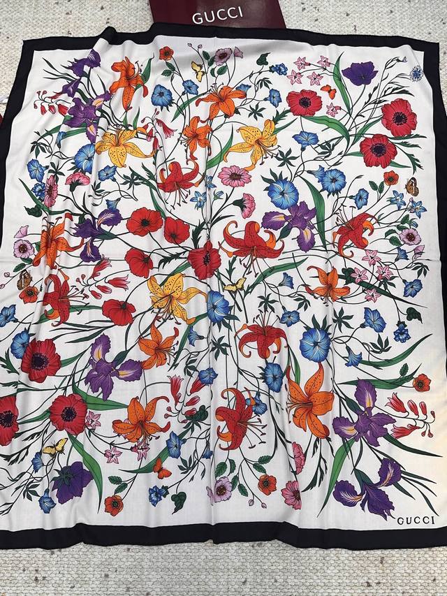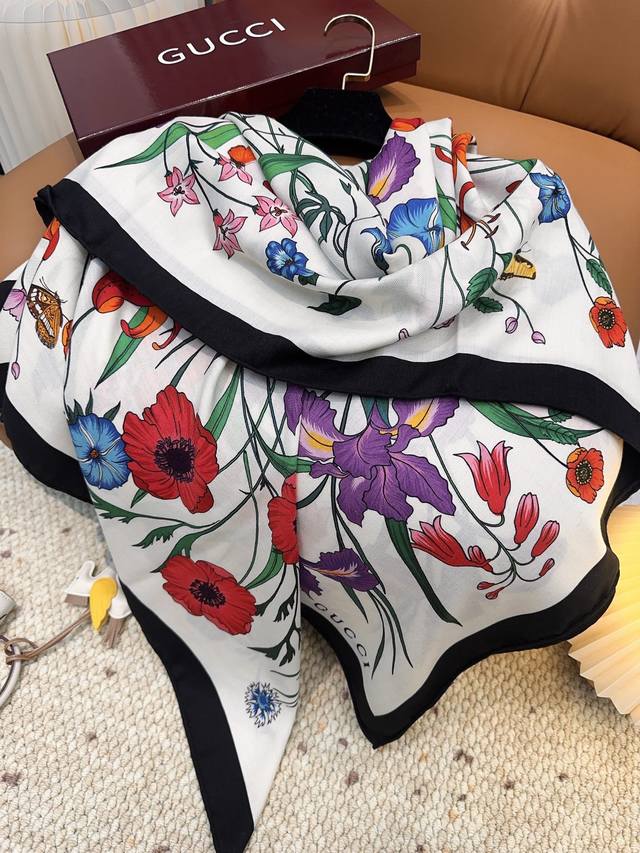 Gucci 古驰 鸟语花香 美不可言,纵情口碑线!重磅花园素描系列~Gucci的稀有设计!!! 温温柔柔的惊艳四座,就是美的最高级表达!Gucci新款!!高级的面料质感和超赞的配色图案,这么美好气质的披肩,妥妥的让人高段位胜出,就是能让你在人群中气质与众不同!!!色调的玩转拿捏的非常好!这种素描花卉设计,高级,大方,得体!!尺寸规格140*140Cm顶级真丝羊绒大方巾。