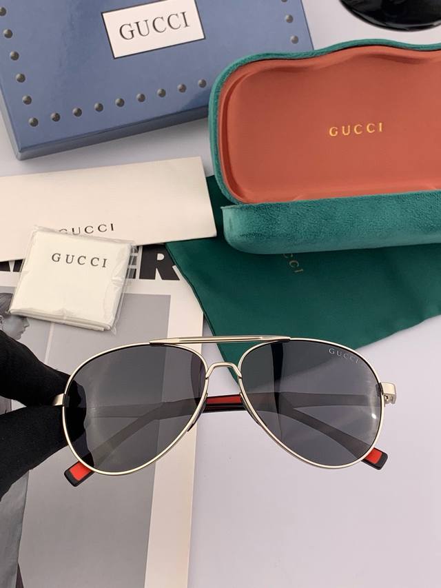 Gucci 男款炫彩飞行员偏光太阳镜 材质:高清尼龙加厚卡槽高清偏光镜片 无边框镜架颜型号:G3807