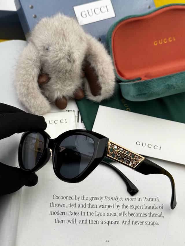Gucci 2025开春新款 潮流爆款 时尚方框偏光太阳镜 高品质 佩戴舒适 网红潮款墨镜 女士高清尼龙偏光太阳镜 高品质Tr镜框...