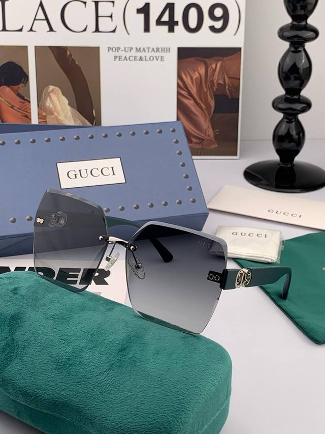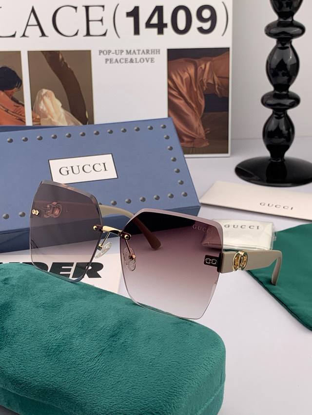 Gucci 2025开春新款 最新款无框太阳镜 各路网红纷纷带起气场满分 俏皮甜美.上脸效果更佳.金属质感超好 型号:G25812