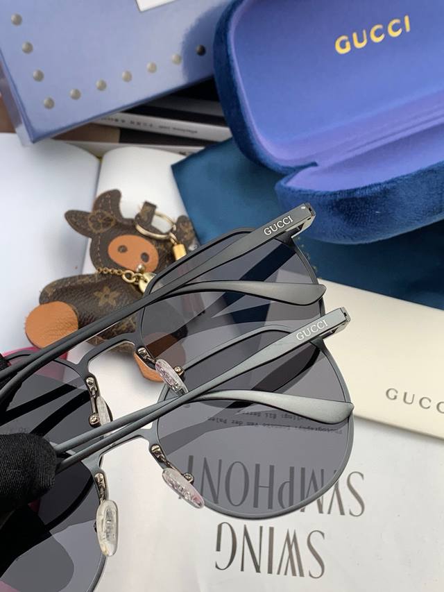 Gucci-2025新款情侣款偏光太阳镜、完美品质,独特设计 高品质 高档哑色男仕太阳镜 铝镁材质的镜架超轻还防汗腐蚀 适合各种脸型,经典太阳镜 超个性 古典与