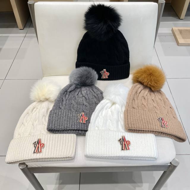 / 经典蒙口毛线帽 秋冬颜值超高的单品之一 真狐狸毛球 毛质非常紧致有质感! 四个颜色哦~拍照很上镜