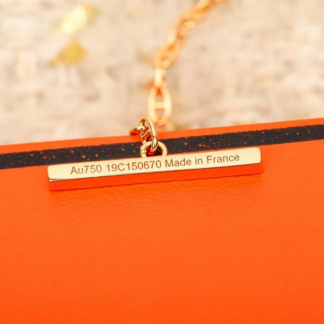 He Mes爱马仕棕色珐琅金色大号项链...