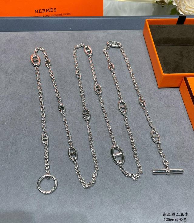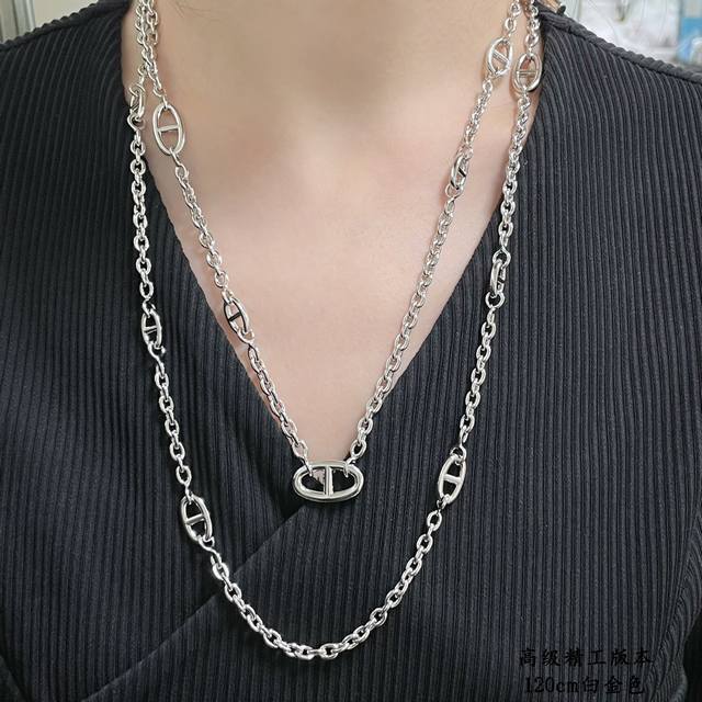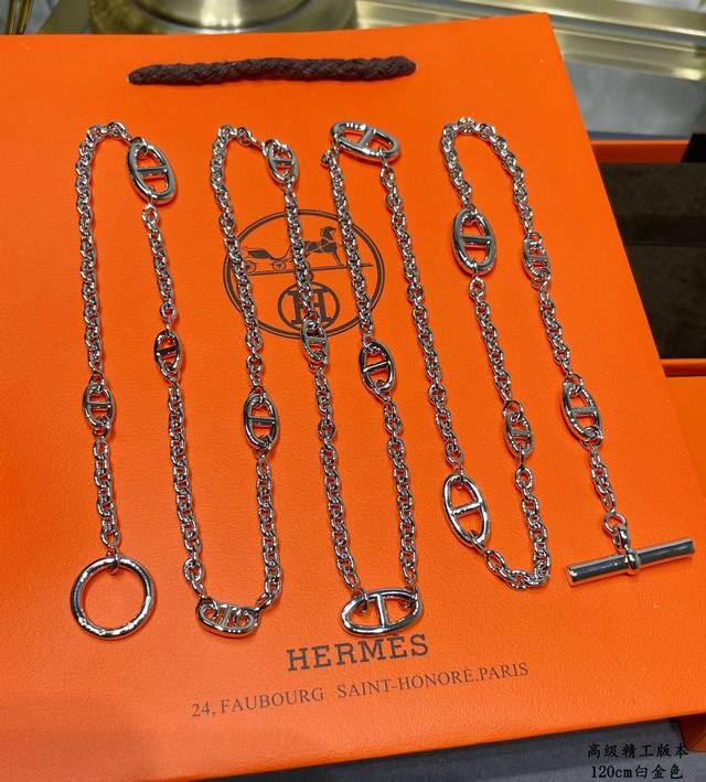 / 此款调价亚金加厚电镀18K白金 120Cm 爱马仕猪鼻子腰链,精工,字印齐全, 正品一万三,我们完美复刻 Hermes猪鼻子Farandole项链 单独佩戴是简