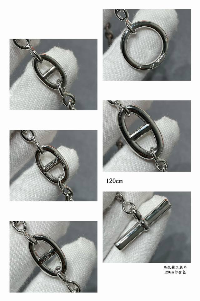 此款调价亚金加厚电镀18K白金 120Cm 爱马仕猪鼻子腰链,精工,字印齐全, 正品一万三,我们完美复刻 Hermes猪鼻子Farandole项链 单独佩戴是简