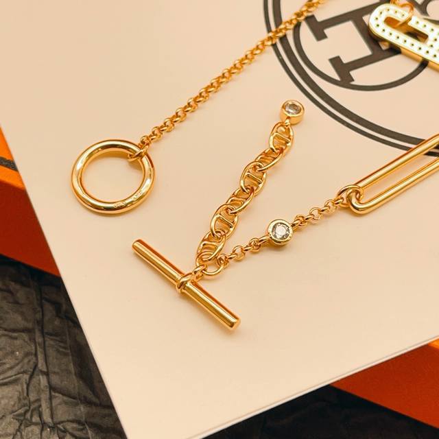 He Mes最新款爱马仕白色猪鼻子金色项链 一致Zp黄铜材质,非常的上镜设计很特别值得入手高级手工坊系列