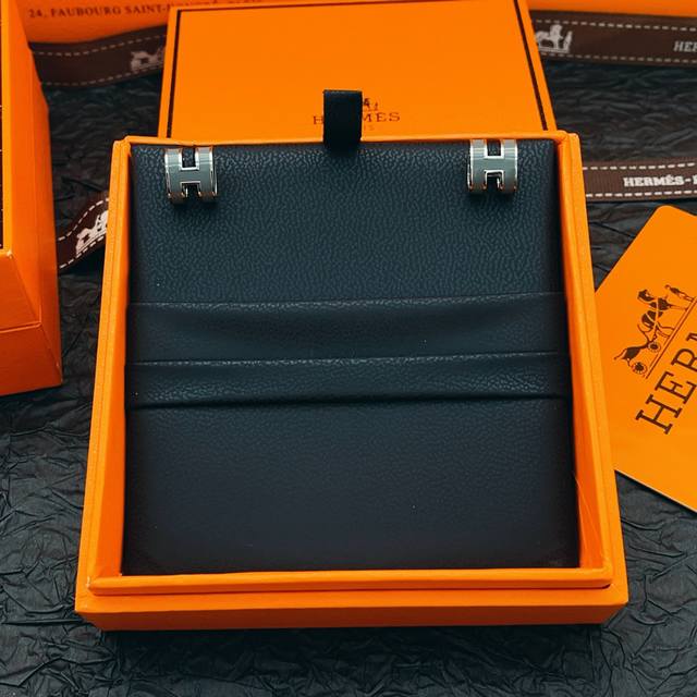 爱马仕He Mes最新款金边黑色H珐琅耳钉 一致Zp黄铜材质,非常的上镜设计很特别值得入手高级手工坊系列