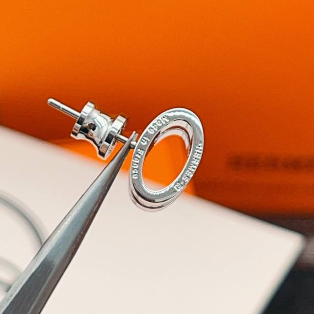 爱马仕He Mes最新款银边灰绿色H珐琅耳钉 一致Zp黄铜材质,非常的上镜设计很特别值得入手高级手工坊系列