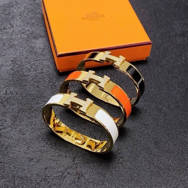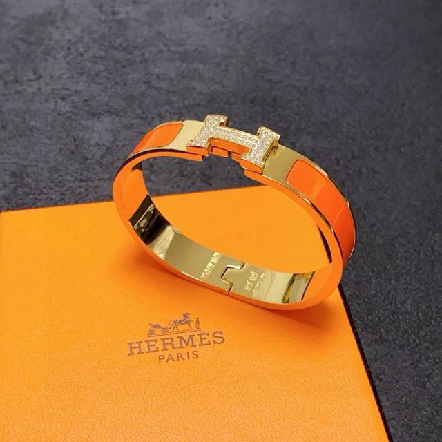 独家爆款原单货 爱马仕Hermesh带钻手镯高版本一比一精工版 做工细腻光滑中号版本从上市以来一直深受Mm喜爱每一种颜色都有它独一无二的光彩!上手效果非常好看!