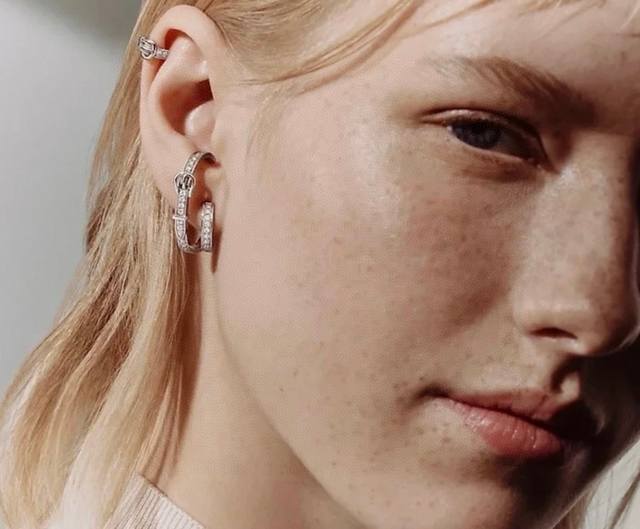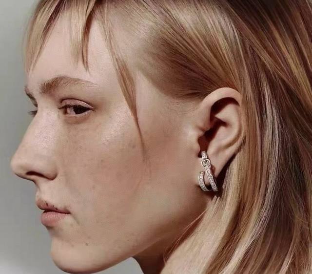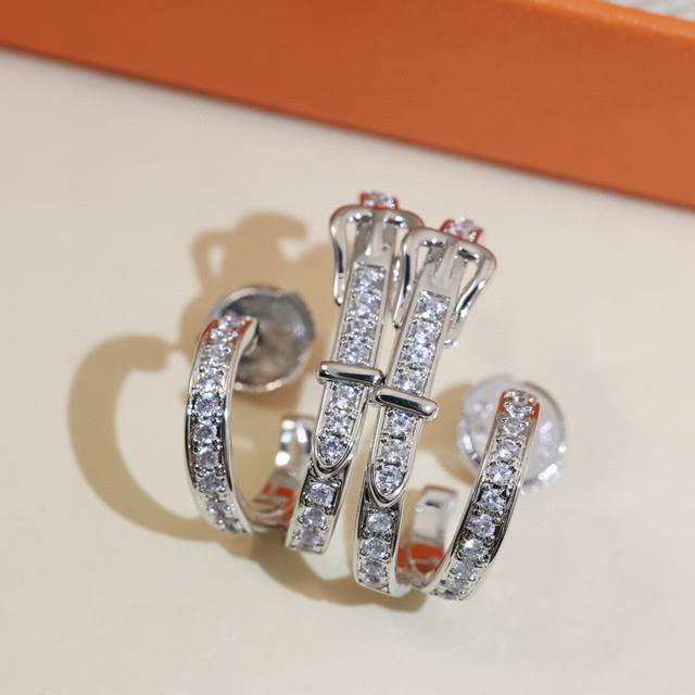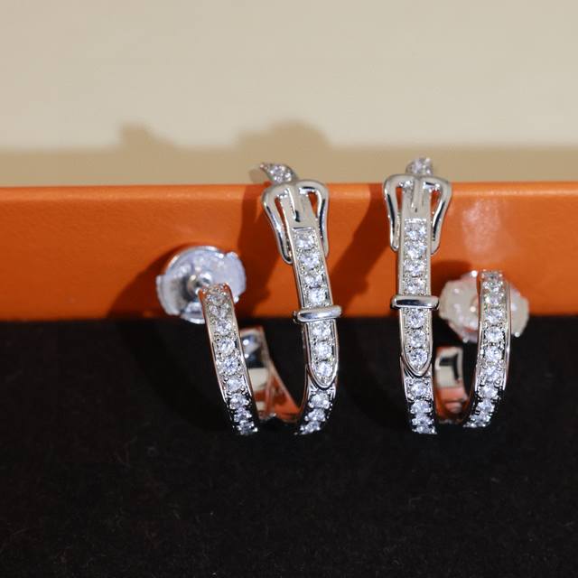/ 精工版本 Hermes 爱马仕皮带扣满钻耳钉 纯银耳针亚金材质 配飞碟耳塞。手工铲钉镶嵌5A锆钻!18K白金色!带Logo 爱马仕耳钉 皮带扣耳钉 DDD