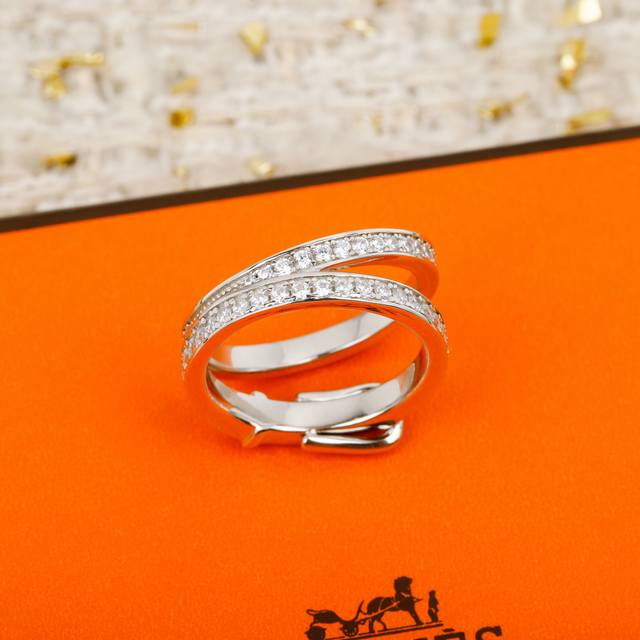 / 纯银 V金P190 DDD 我们出品 爱马仕Etriviere 双圈戒指 ,可订做18K真金真钻版,只做对版真金货,价询客Fu DDD 明星、网红、名媛都难以抗
